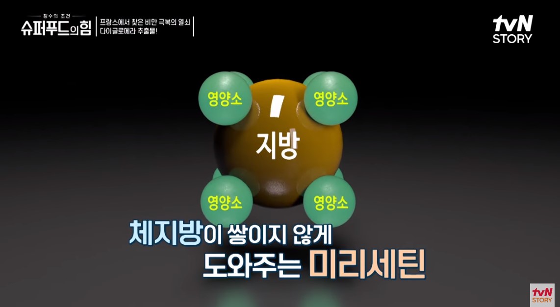 다이글로메라 추출물에 함유된 천연 물질 중 미리세틴이란 성분은 지방합성을 억제해 체지방이 쌓이지 않게 도움을 줄 수 있습니다.