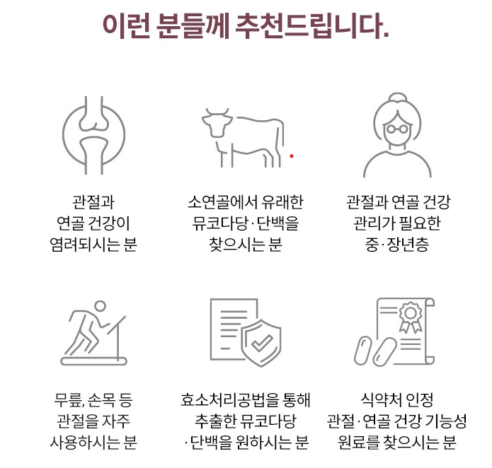 식약처에서 인증한 건강기능식품 콘드로이친은 소 연골 콘드로이친뿐입니다.
